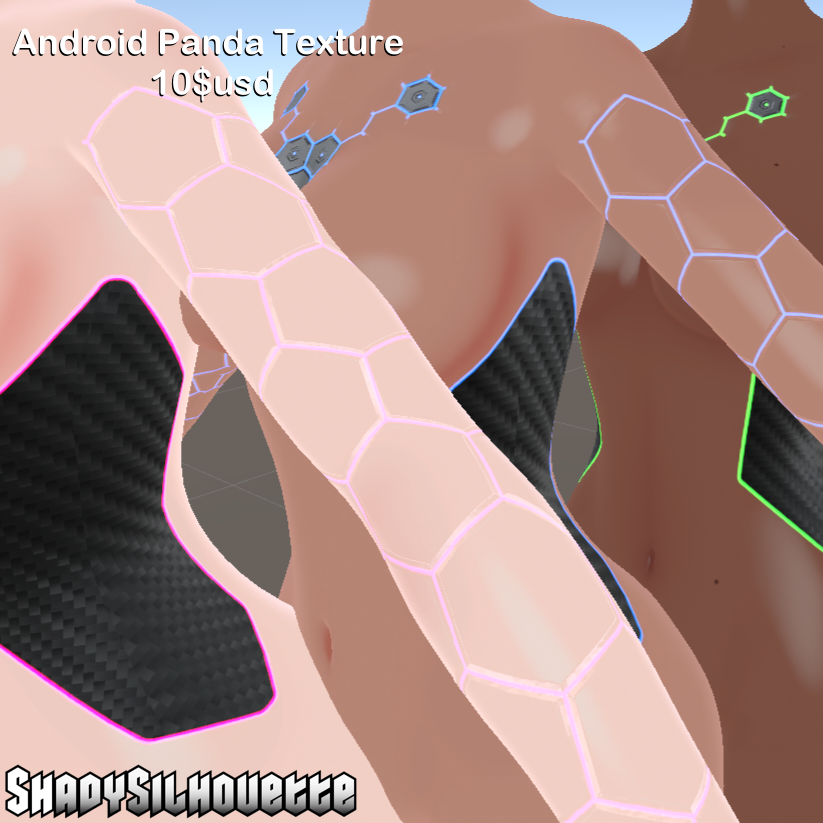 Android themed female panda base texture made in substance painter. Clean body texture making personalizing easier.